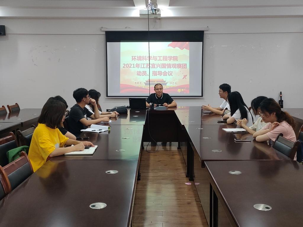 2021年7月6日,环境科学与工程学院2021年江苏宜兴“创产业协同,探绿色发展”暑期国情观察团在12407召开出征动员、指导会。