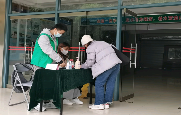 应学校与学院防疫工作需求,我院每天招募10名志愿者在九栋清和楼设点为进出人员进行体温测量、基础消毒等工作。