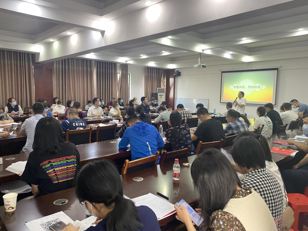 为深入学习贯彻落实党的二十大精神,领会习近平总书记在二十大报告中对教师队伍建设的期许和要求,培养一支有理想信念、有道德情操、有扎实学识、有仁爱之心的“四有”好老师,把关心教职工的身心健康落到实处,通过心理辅导专题讲座,帮助我院教职工树立积极向上的健康心态,缓解教职工心理压力,提升教职工身心健康水平。我院特邀请桂林市精神卫生中心医务科科长,副主任医师,桂林医学院外聘副教授古田教授为我院教师开展“读懂自我,悦纳自我”专题讲座。