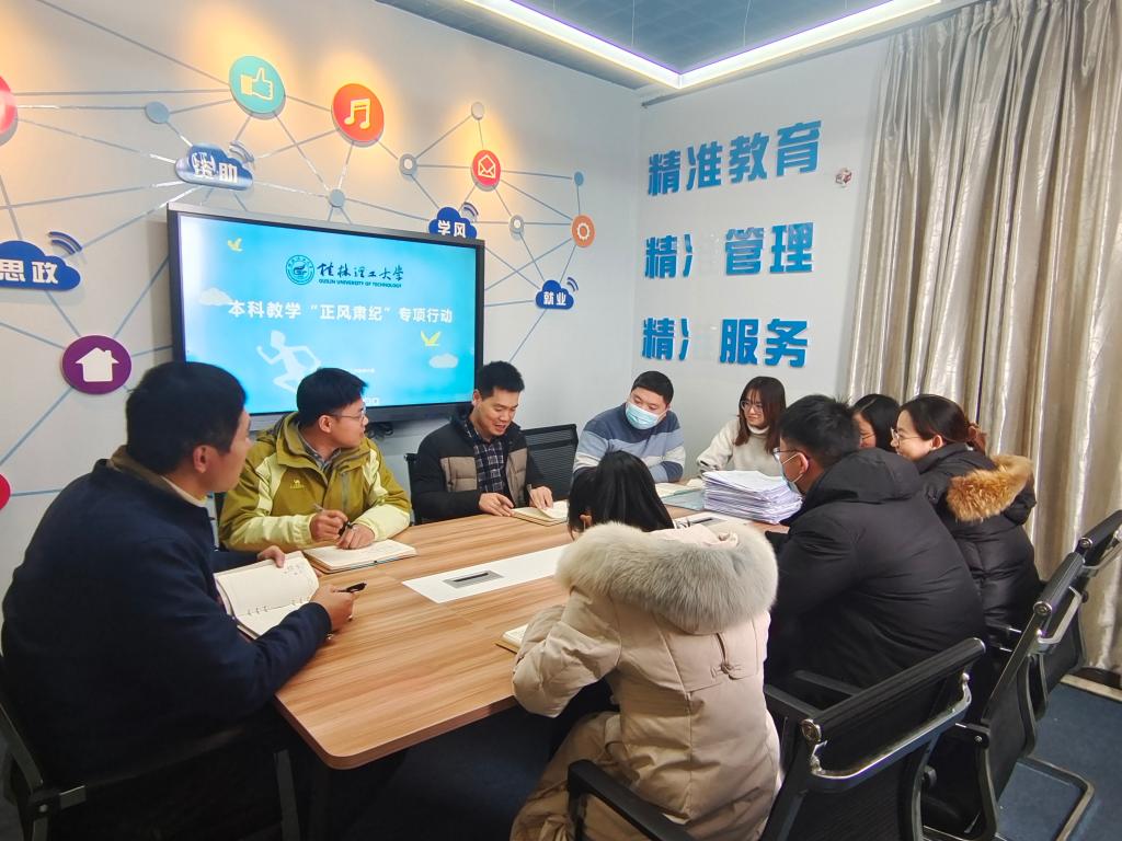 12月5日,学院党委副书记郝文佳带领学院辅导员重温了《桂林理工大学本科教学工作规范》(桂理工教〔2017〕36号)、《桂林理工大学全日制本科考试管理规定(修订)》(桂理工教〔2019〕20号)和《桂林理工大学教学事故认定与处理办法》(桂理工教〔2010〕3号)等规章制度,强调:严格按照课表上课,不迟到、不早退、不拖堂;上课时要做到衣冠整洁,仪表端庄,言行文明,不得发表不当言论,不准以播放影视作品或影视欣赏作为上课的主要形式;不得随意停课、调课或请他人代课,确有不可抗拒的原因需调整教学安排的,必须履行调停课手续。同时,对考试与监考工作提出要求,他指出:要采用恰当的课程考核方式,加强学习过程的考核,不得随意降低考核标准;监考时提前20分钟以上到达考场,检查考场环境,规范引导考生入座,清理桌面、抽屉等,要求考生将随身物品存放在指定位置,并逐一核验考生身份。考试过程中,监考人员应认真履行监考职责,维护考场纪律,监考人员“一前一后”、“一静一动”规范监考,不做与监考无关事情;对学生违纪舞弊行为应及时制止并处理,确保考试公平公正,对违纪、舞弊考生,监考人员应按程序妥善做好证据收集、固定工作,当场填写登记表,要求违规考生签字确认,两名监考人员签字确认,考试结束后及时上报相关材料等。