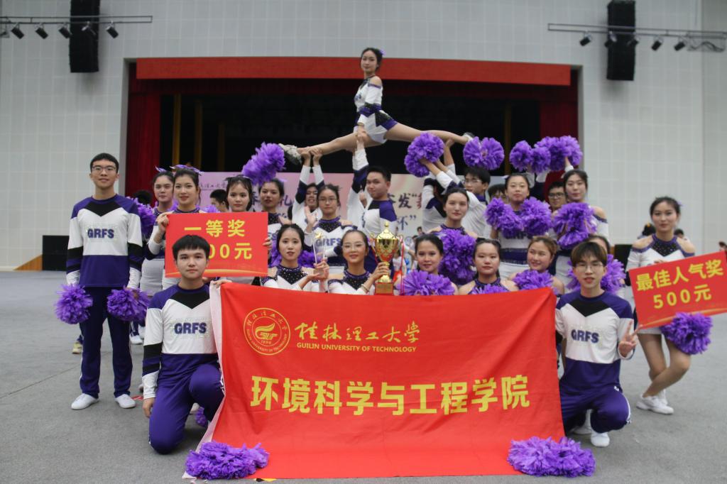 比赛中,15支参赛队伍为观众带来精心编排的啦啦操作品,伸臂、踢腿、旋转、跳跃,伴随着动感十足的音乐,他们用新颖别致的动作诠释力量与美,用优雅跃动的身姿舞动青春活力。经过激烈地比拼,我院“Violet storm”队获得本次比赛一等奖和最佳人气奖。
