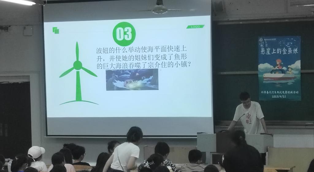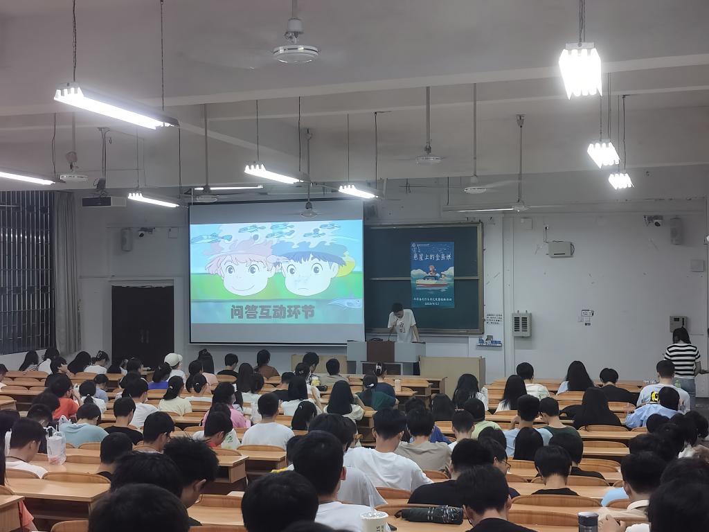 2023年4月21日晚我院在励新楼06509教室举行了主题为“春韶,权晓”的观影活动--《悬崖上的金鱼姬》,活动由我院的岳子登同学主持,我校学生积极参与。