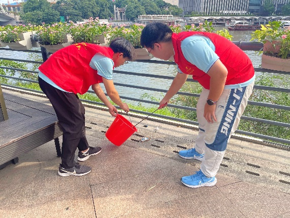 实践团成员在大运河边做志愿服务
