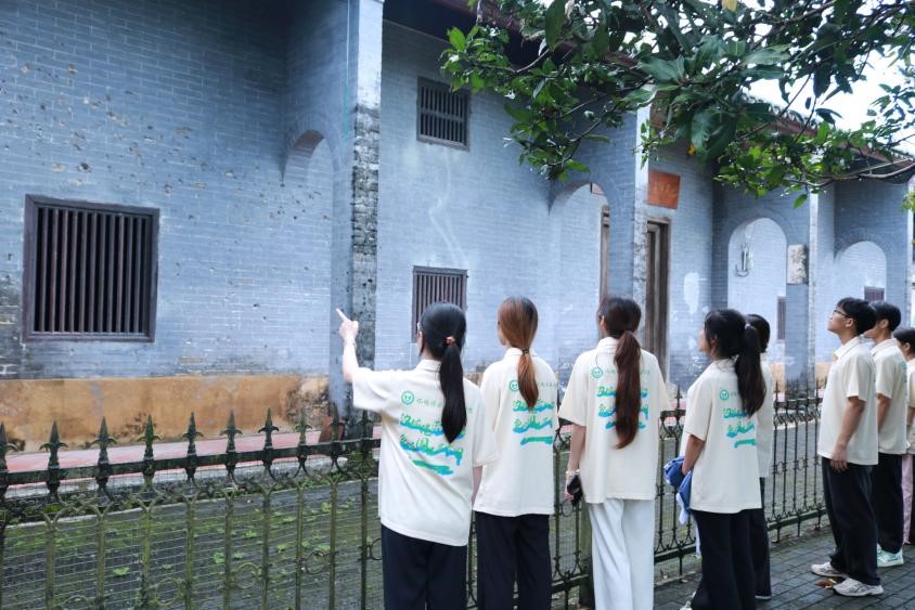 在故居前,实践团的成员们肃立凝望,从一面面军旗、一门门大炮、到一把把钢刀,这些展品仿佛具有生命力,虽然历经百年沧桑,却依然能让人感受到它们曾经在战场上的赫赫威风。参观过程中,故居内的墙壁弹孔成为了大家关注的焦点。这些弹孔诉说着战争的残酷与和平的来之不易。面对这些弹孔,成员们纷纷表示要珍惜当前和平稳定的生活环境,更加努力地学习科学文化知识,在新时代新征程中,担当起中华民族伟大复兴的责任。