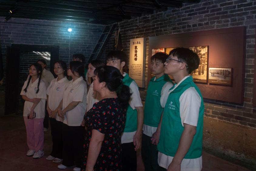 实践团全体成员跟随讲解员的步伐,缓缓步入这座充满历史沧桑的院落。在讲解员的生动描述下,一个个历史场景彷佛在大家眼前徐徐展开。从刘永福将军的贫寒出身到他在中法、抗日战争中的英勇抗敌,再到他晚年致力于家乡建设的深情厚谊,每一个故事都深深触动了在场成员的心弦。这鲜活的历史故事不仅是对他个人英雄主义的颂扬,更是对他家国情怀的深刻诠释。