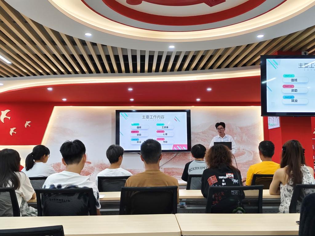 培训会伊始,办公室学生助理负责人对助理的定位、岗位职责、工作纪律等方面进行全面梳理,她指出,作为学院办公室的重要辅助力量,学生助理们承担着沟通上下、协调左右的桥梁作用,希望大家能够珍惜这次机会,不断提升自我,同时为学院的发展贡献自己的力量。随后,各部门负责人围绕心理、资助、就业、考勤等核心工作进行了深入浅出的讲解,并对学生助理们提出的有关考勤表填写、办公室物资签账、报销单投递等问题进行逐一解答。最后,董翼对本次培训会议进行了总结讲话,并对全体学生助理提出五点要求与期望。一是要明确职责,踏实肯干,确保各项工作的顺利进行;二是要一丝不苟,注重细节,确保信息的准确性和完整性;三是要积极主动,善于沟通,建立良好的人际关系和工作氛围;四是要分清轻重缓急,合理安排,高效执行;五是要注重学习,不断提升自己的综合素质。