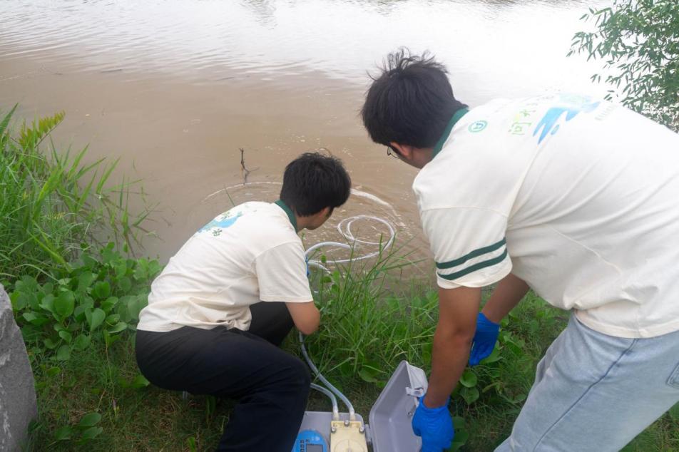 实践队进行水质取样
