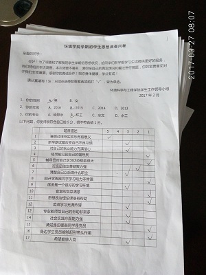 为更好创建师生关系,提高上课质量,进一步加强教学管理和学生管理,全面评价学院教师教学工作和班级班风学风。3月中旬我院进行了开学初期学风调研和教师评教工作。此次工作由院团委学生会学习部进行整理收集,环境学院学生工作办公室指导。