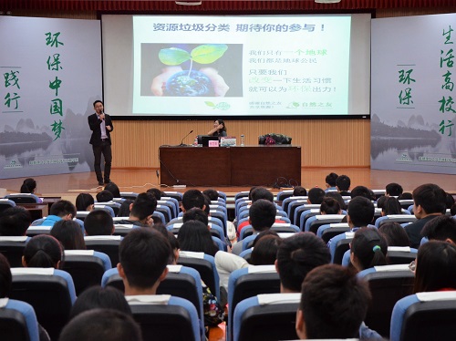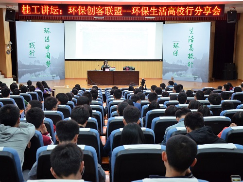 2017年4月22日为第48个世界地球日,为加强大学生的环境保护意识教育,发挥我院在环境学科中的优势和作用,构建大学生环保实践教育平台,上午10点30分,我院于图书馆报告厅举办了一场题为“环保创客联盟——环保生活高校行分享会”的桂工讲坛。应我院邀请,创客联盟创始人何艾莉女士进行了本次讲座,院团委副书记唐红兵老师和我院相关专业百余名同学参加了本次分享会。