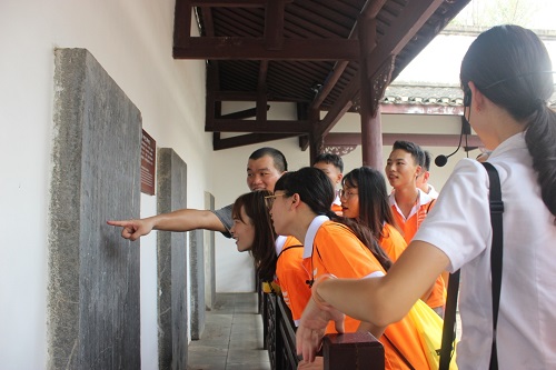 经讲解员介绍,队员们得知,柳宗元因参与王叔文改革失败遭贬至永州谪居10年。永州虽有胜景恐亦在闺中人不识,但柳宗元在永州写下那么多关于永州的华文诗赋,为永州传播声名作出了贡献。