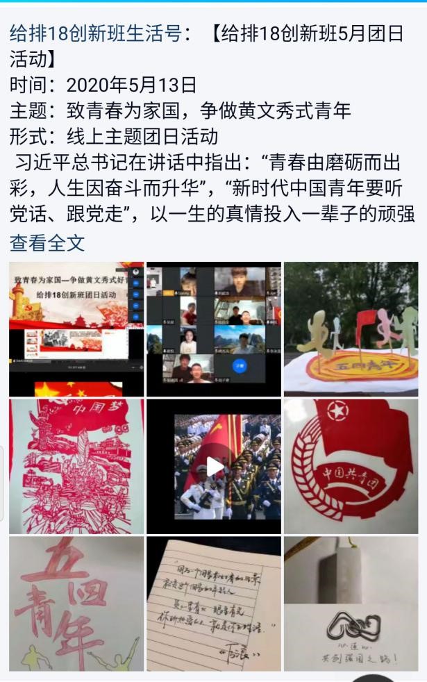 环境学院5月9日-5月16日期间组织开展了“致青春,为家国”—争做黄文秀式好青年主题团日活动。为切实开展好本次团日活动,许多团支部采用钉钉线上与QQ群聊的形式开展团日活动,也有部分团支部采取线下开展团日活动的形式,积极学习黄文秀书记相关事迹与精神。