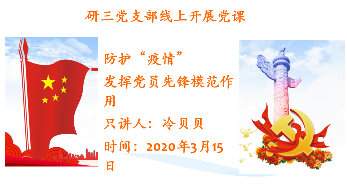 3月15日晚上,我院研三党支部通过腾讯课堂线上开展了“疫情防护,发挥党员先锋模范作用”的专题党课,培训班全体入党积极分子聆听了专题党课。