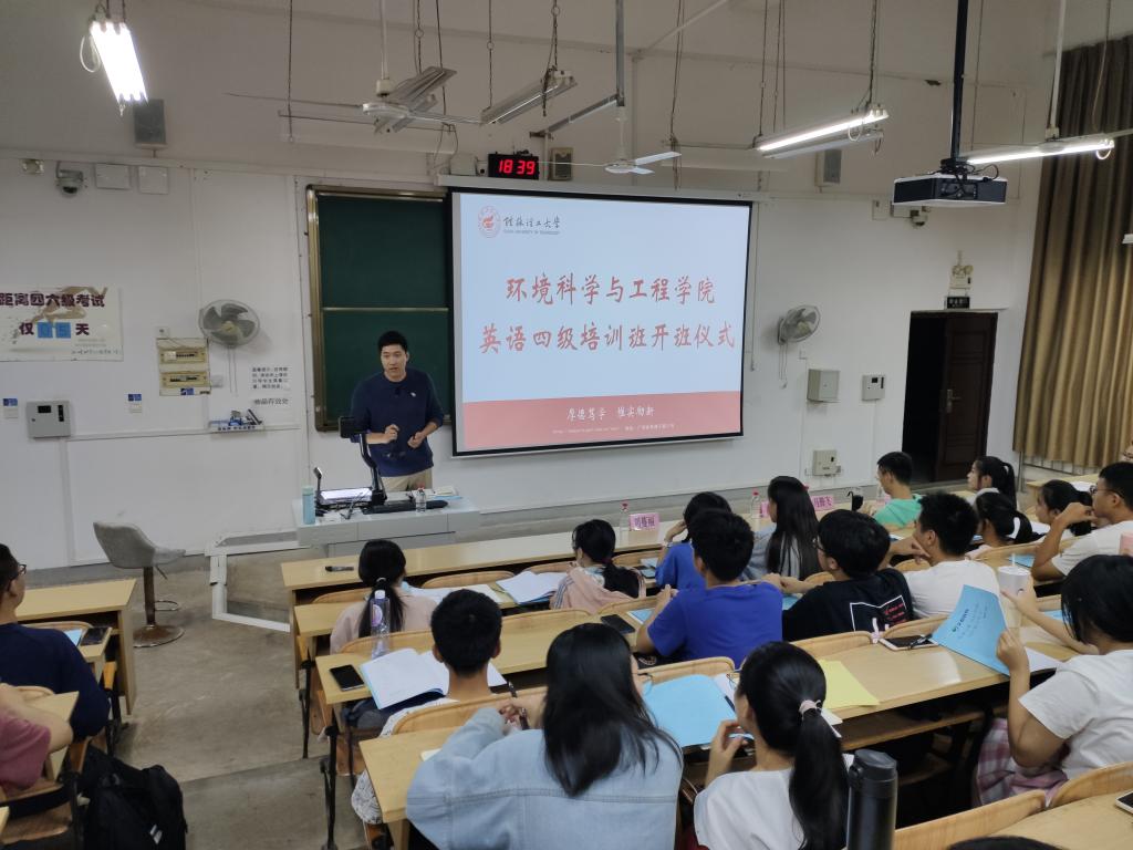 为加强学院学风建设,增强学生的英语过级能力,我院特邀校外英语培训机构为我院学子进行为期2个月的英语四级培训。10月27日,我院在雁山校区04622教室举行环境学院2020年秋季学期大学英语四级培训班开班典礼,学院党委副书记郝文佳出席开班典礼。
