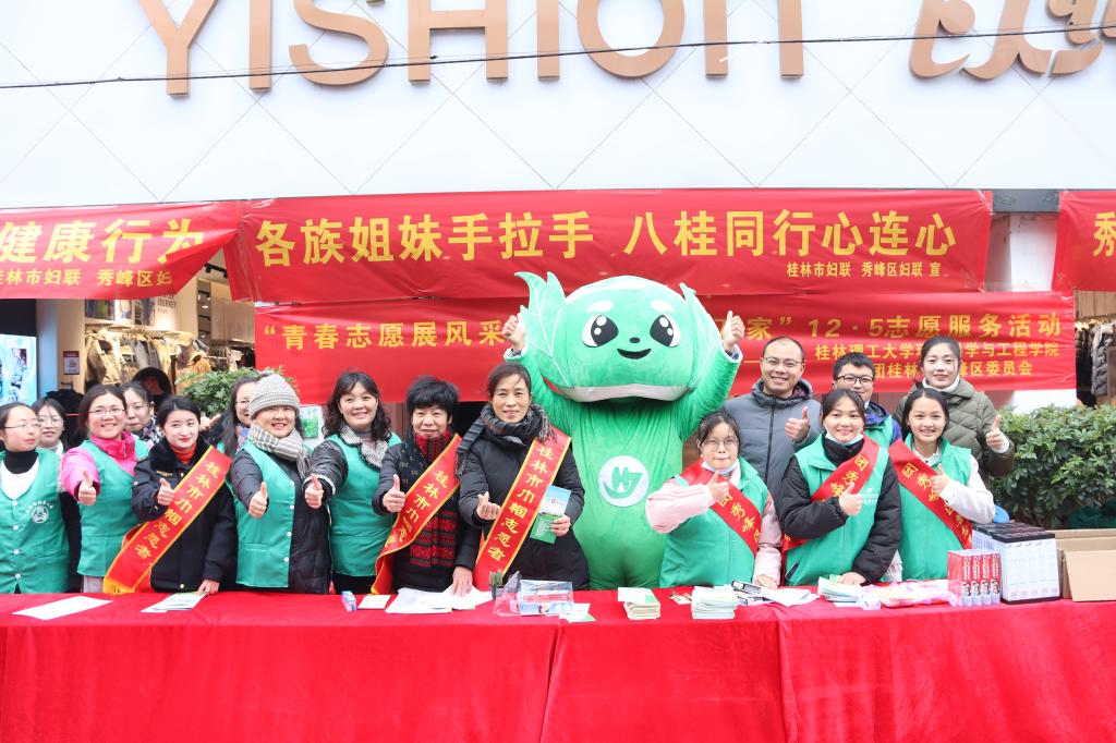 为深入贯彻落实党的十九届五中全会精神,加快推动绿色低碳发展,让“绿水青山就是金山银山”这一生态文明理念深入人心,全面提高在校大学生、市民生态环保意识。2020年12月4日,在第34个“世界国际志愿人员日”来临之际,我院携手秀峰区团委于桂林市秀峰社区卫生服务中心开展“青春志愿展风采,生态文明进万家”12.5志愿服务活动。