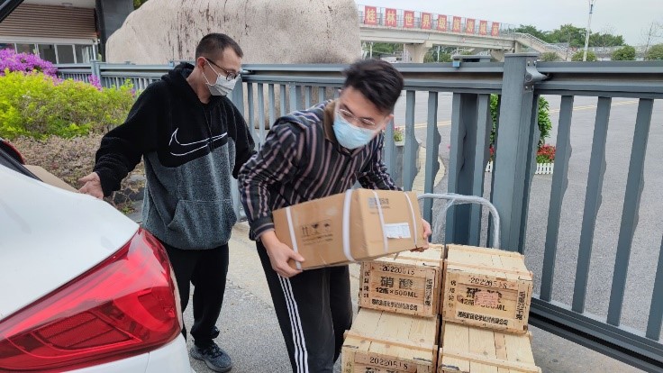 实验室老师搬运和消杀学生实验物资(二)