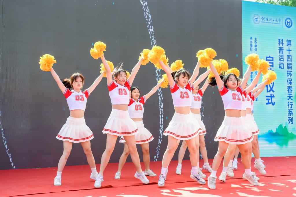 整场活动内容丰富多彩。与会人员共同观看了《生态科普基地》宣传视频、学校大学生艺术团啦啦操队和街舞队带来的表演《勇毅前行》以及环境学院艺术团主持人队带来的朗诵《社会主义核心价值观》,随后学校大学生艺术团模特队带来的《环保时装秀》将整个活动现场氛围推向高潮。活动现场还为桂林理工大学环保科普大使代表、桂林理工大学环保科普志愿者代表颁发了荣誉证书。