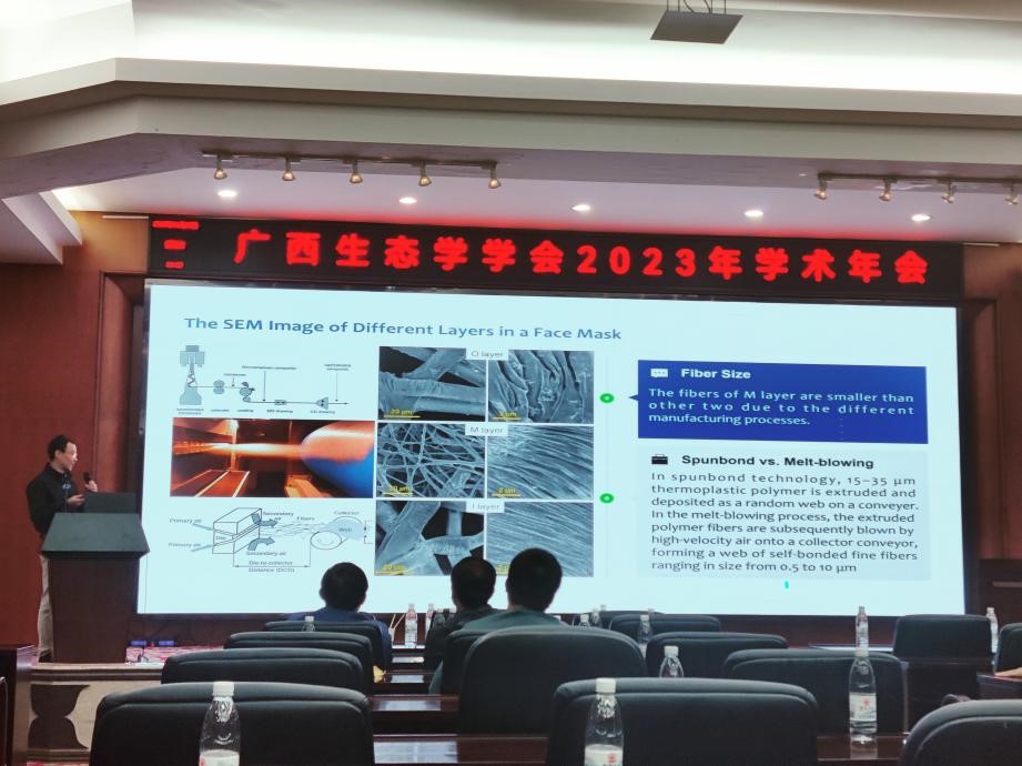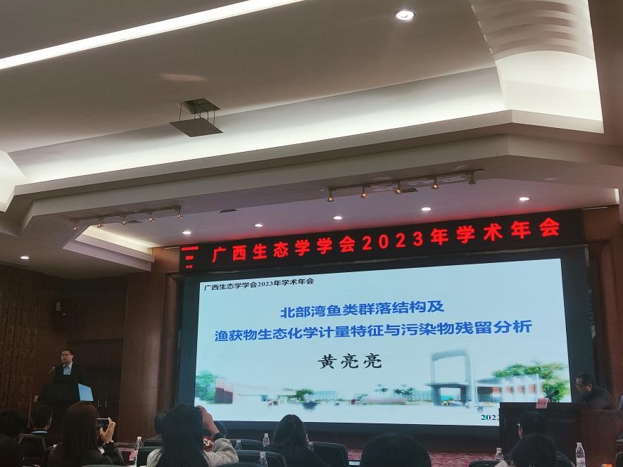我院教师黄亮亮教授受邀作《北部湾鱼类群落结构及渔获物生态化学计量特征与污染物残留分析》的大会特邀报告,潘复静副研究员和马捷博士分别在分论坛作了分会场报告(《喀斯特植被恢复过程中植物缓解氮磷限制的机制》和《海水中的口罩垃圾污染》),向与会代表汇报了我院相关研究的最新成果。