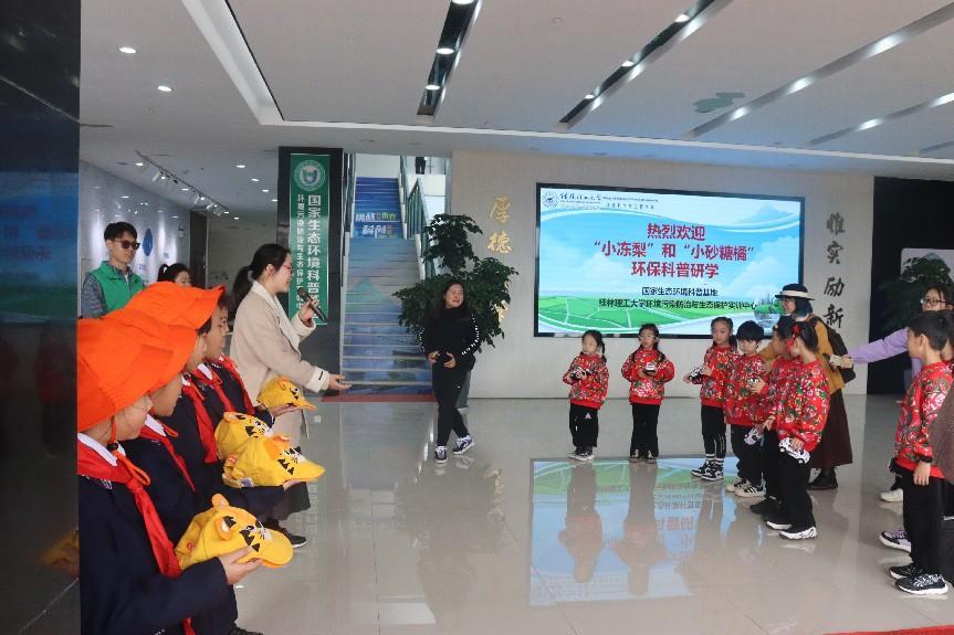 1月16日,身着东北大花袄、来自辽宁铁岭市的8位“小冻梨”来到我校开启游学之旅,他们与桂林市君武小学的10名“小砂糖橘“们共同打卡了我院国家生态环境科普基地——桂林理工大学环境污染防治与生态保护实训中心,开展了一次充实的环保科普研学活动,在生态环境科学探秘中搭建起了南北友谊桥梁。小朋友们参加了虚拟仿真的垃圾填埋场、噪声与辐射控制体验展厅、水污染控制模拟厅等10几个展厅,加深了对水污染、大气污染、垃圾污染等方面的知识。