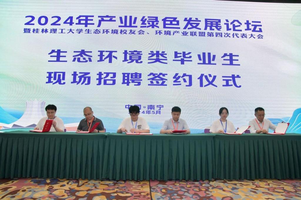 为切实推进党建与业务工作深度融合,以高质量党建推动业务工作高质量发展,2024年5月12日,由桂林理工大学主办,广西环境污染控制理论与技术重点实验室、广西岩溶地区水污染控制与用水安全保障协同创新中心、桂林理工大学环境产业联盟、桂林理工大学生态环境行业校友会、桂林理工大学漓江保护与发展研究院共同承办,上海诺天实业(集团)有限公司、博世科集团、中铁城际规划建设有限公司、新宇达环保科技有限公司等企业共同协办的“2024年产业绿色发展论坛”在广西南宁市召开。本次论坛秉承“产业·协同·绿色·发展”主题,共设置产业绿色发展论坛大会报告、生态环境类毕业生现场招聘、桂林理工大学环境产业联盟企业入驻签约、生态环境保护研究生学术论坛等4个重要环节,来自56家企业、8家高校的200余名代表围绕碳中和与碳减排·新质生产力·污染治理技术·全产业链协同发展等主题开展交流。
