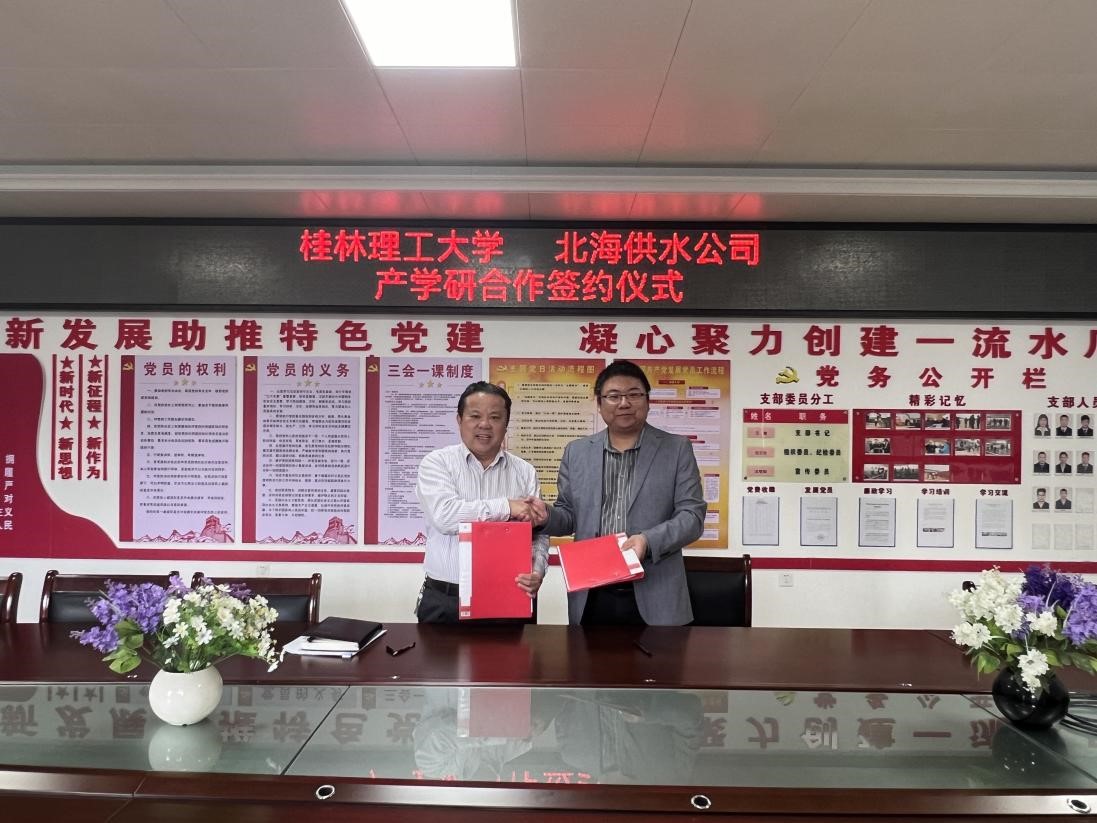 2024年12月24日下午,我院李海翔副院长与北海市供水有限责任公司签署了“产学研合作协议”,同时为桂林理工大学与北海市供水有限责任公司“产学研合作基地”揭牌。
