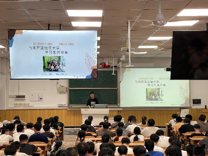 分享会上,5名优秀的本科生以马来西亚拉曼大学访学的经验为主题,从课程选修、文化适应、跨学科学习等角度展开了深入分享。他们细致地介绍了拉曼大学的教学模式,互动式参与、实践与理论相结合的课堂充分激发了学生的创新思维。此外,走入实验室参与课题研究的经历,更是提升了他们的科研创新能力。