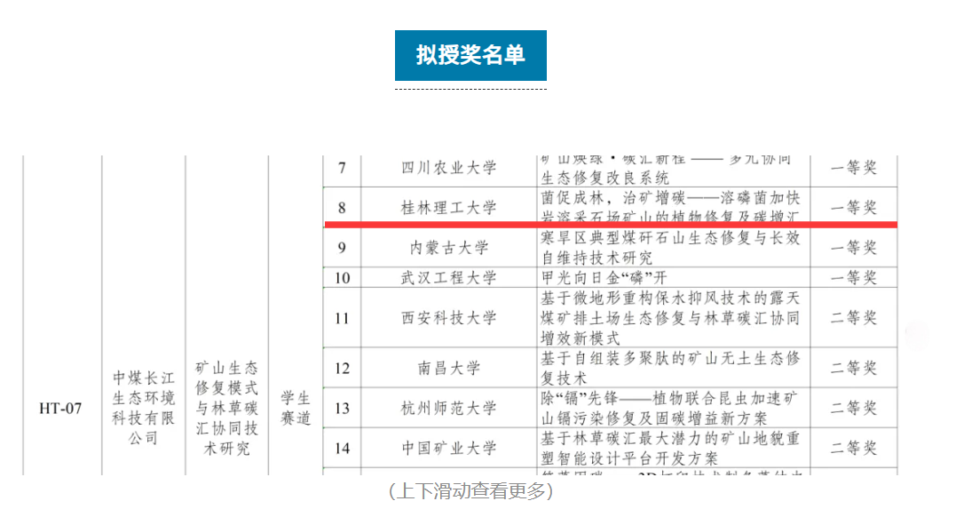 此项目系统性应用岩溶本土溶磷菌生态调控功能,研发岩溶采石场矿山植被快速修复及碳增汇技术,既破解了岩溶采石场土壤贫瘠、植被难存活的生态修复难题,又通过微生物调控提升碳汇效率,实现了“生态修复+碳增汇”双目标,充分契合大赛“服务国家战略需求”的导向,得到评审专家组的高度认可。