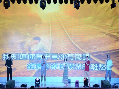 首先进行的是整场活动第一部分——“花Young游园”。大一大二的同学们为此准备了一系列的游戏,大四同学们在愉快的游园游戏中进一步拉进了与学院的关系,更加深了同窗友谊,气氛欢快,现场欢呼声不断。晚上7点30分,毕业晚会准时开始,一道道惊艳的视觉大餐呈现在了观众们的面前。首先是来自漓江学院“1979乐队”的开场秀,三首劲爆的摇滚乐带动了场下观众们的热情。接着是各个社团的精彩表演,风采各异。更有我院人气歌手包志炜演唱的《一块红布》和陈世杰演唱的《野子》和《梦想天空分外蓝》。晚会并不单调,歌曲唱完后是一个经典有趣的游戏环节——抢凳子。大四同学们积极参加游戏,玩得不亦乐乎,游戏结束后纷纷发表了自己的感想。游戏过后,迎来了整场晚会的高潮。本次晚会为大四学长学姐们准备了毕业蛋糕,在主持人的盛情邀请下,解校长与各领导老师走上晚会舞台为大四同学们切下了甜蜜的蛋糕。温婉大方的大四辅导员夏晴“妈妈”还表达了对“孩子们”美好未来的期望。为带给大四同学们更多美好回忆,工作人员播放了一段12级各班级同学们在大学里成长历程的视频,更有团委学生会成员们对毕业生们诚挚的祝福。接下来,各年级辅导员们为我们大四毕业生送上了一首《祝你一路顺风》,还有我院团委学生会全体成员演唱的《不说再见》,祝福我院毕业学子能在未来梦想之路上越走越远。