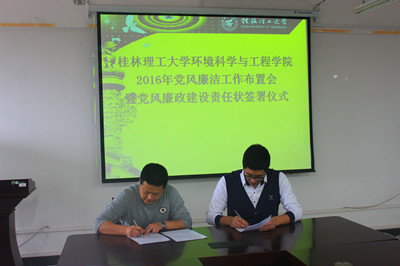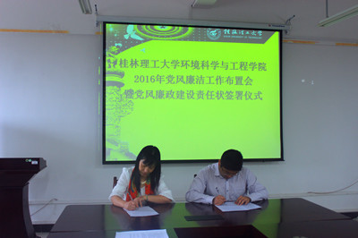 4月21日下午,我院在雁山校区12407会议室召开2016年党风廉洁工作布置会暨党风廉政建设责任状签署仪式。学院领导王璐、郝文佳、游少鸿、李艳红出席会议。学院各教研室主任、学院办公室主任、学工组长、团委书记参加会议。