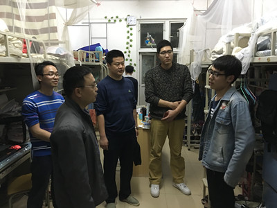 会后,学院领导带领班主任老师走访了实验室、学生宿舍,对一些存在安全隐患的地方提出整改意见,并对同学们强调不能疏忽大意,要时刻注意实验室、宿舍安全。
