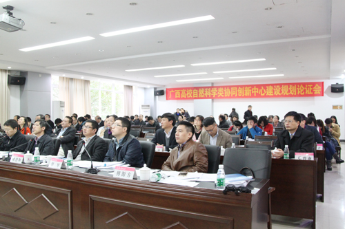 12月4日,由自治区教育厅主办的广西高校自然科学类协同创新中心建设规划论证会在广西师范大学举行。学校校长解庆林教授率副校长陈学军教授、王敦球教授和广西有色金属隐伏矿床勘查及材料开发协同中心、岩溶地区水污染控制与用水安全保障协同创新中心和科技处相关人员参加了论证会。