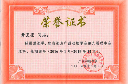 2015年12月5日,在钦州学院召开广西动物学会第九届会员代表大会及学术年会,我院博士生导师吴志强教授、黄亮亮博士带领研究生参会。环境科学与工程专业2015级博士研究生邹琦、环境科学与工程专业2013级硕士研究生师瑞丹、丁洋、封文利以及环境工程2014级硕士研究生尹超等分别作了口头报告,向与会代表介绍了目前该课题组的研究成果,师瑞丹同学还获得学生组口头汇报二等奖。 最后经投票选举,我院黄亮亮博士当选为广西动物学会第九届理事会理事。