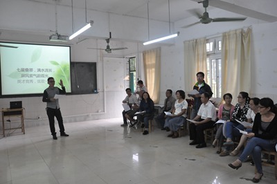 近日,从屏风校区教12楼12105教室里传来阵阵嘹亮的歌声。原来,为丰富校园业余文化生活,加强校园文化建设,弘扬校园文化精神,增加学院的凝聚力和团结协作的精神,学院分工会利用周二下午的课余时间集中全院教职工学习唱校歌,并邀请学校在声乐方面有一定造诣的蔡老师进行了专业指导。