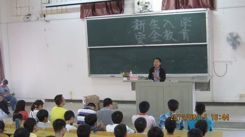 9月15日下午16:30,我院组织2012级全体新生在雁山校区05314教室进行了一次新生入学安全教育,学院党委副书记周章明老师就有关安全问题和知识与新生进行了讲解。