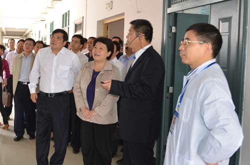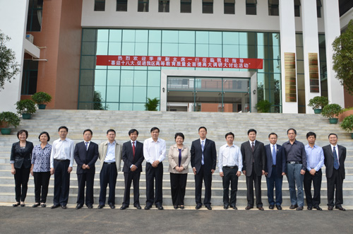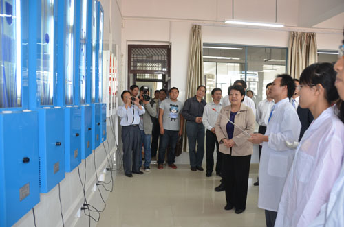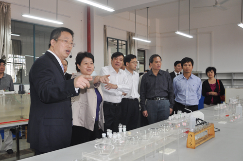 为了深入贯彻落实《国家中长期教育改革和发展规划纲要(2010-2020)》、《教育部关于全面提高高等教育质量的若干意见》、《广西壮族自治区中长期教育改革和发展规划纲要(2010-2020)》等国家和自治区关于教育改革发展的纲领性文件精神,10月24日上午,自治区副主席李康率自治区高校工委书记、教育厅厅长高枫,教育厅副厅长黄宇,教育厅副巡视员陆燕,自治区人民政府副秘书长吴建新,自治区发改委副主任韩庆东,自治区人社厅副厅长于祖毅,自治区财政厅副厅长董仕军,自治区科技厅副巡视员彭枝,桂林市副市长巫家世,以及广西高等教育方面的专家等一行30余人莅临我院调研指导促进高等教育质量全面提高大调研大讨论活动。学校领导张学洪、王赣华、陈学军、吴志强、周国清、陈贵英、张鹏,学院领导卢英、曾鸿鹄、朱义年、方荣杰、周章明等以及学院部分师生陪同考察。