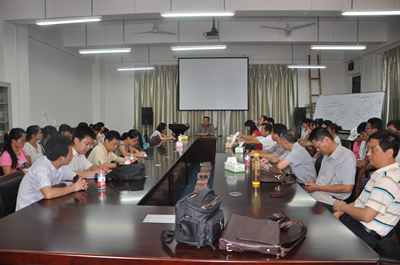2012年7月11日下午,环境学院在雁山校区教9楼的9224会议室召开暑期留校研究生安全教育大会,出席会议的有学院领导有王敦球院长、曾鸿鹄副院长、周章明副书记、张华院长助理及部分硕士生导师刘康怀、成官文、宋波、孙晓杰、曹长春、刘杰、刘汉乐、金鑫,会议由王院长主持。