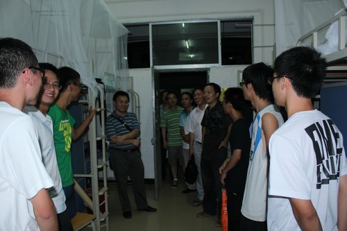 9月12日晚7:00,我院党委书记卢英、副院长曾鸿鹄、副院长朱义年、党委副书记周章明、院长助理张华,带领辅导员、班导师走访了12级新生宿舍,对新同学的到来表示热烈欢迎和慰问。