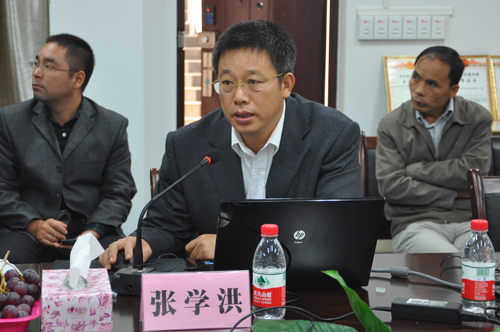 学校张学洪校长出席并致欢迎词。张学洪教授、曾鸿鹄教授、朱义年教授分别就负责的重点实验室(重点学科)建设情况向专家报告。