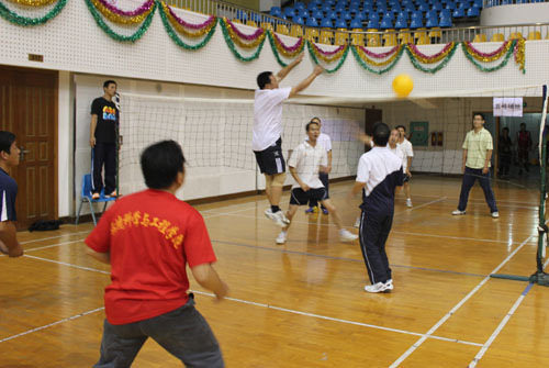 教职工气排球赛第一阶段比赛已经结束,我院男队以三战二胜小组第二的战绩,顺利出线进入12强,准备参加下一阶段的比赛。 为了备战学校工会组织的10月17日开始气排球比赛,我院迅速组建了男女队。学院党委书记卢英亲自带队,每天下午16:30带领大家在体育馆三楼积极训练。由于两地办公,学生搬迁到雁山校区,平时大家都是见缝插针、尽量挤出时间参加训练。 比赛结果不是目的,主要是通过平时的训练及比赛锻炼了身体,丰富了老师们的业余生活。