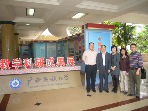 课题组成员赴广西大学、广西民族大学、广西师范学院和广西工学院,就“中国-东盟自由贸易区环境类应用型人才培养研究”课题 (张学洪教授主持,全国教育科学‘十一五’规划2009年度教育部规划课题)进行面对面交流与问卷调查。问卷调查的范围还包括了广西师范大学、桂林电子科技大学和钦州学院。课题组将课题研究成果向各有关高校进行了展示与说明,并就中国-东盟自由贸易区环境类应用型人才培养模式等方面进行了深入的交流探讨,为今后课题研究成果的推广实施奠定了基础。