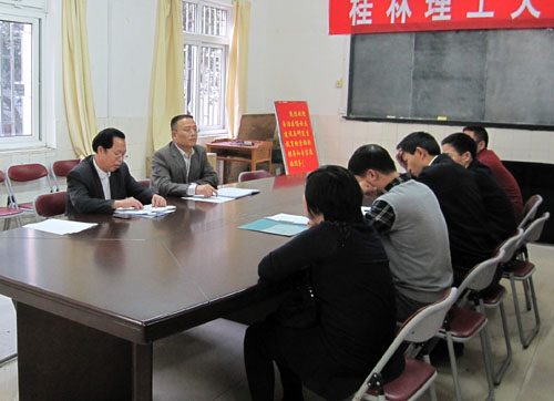 会上,李忠培同志首先向全院教职工通报了我院在学生、教职工运功会上取得的优异成绩,在第39届校运会上我院荣获团体总分第三名、男子团体总分第二名、女子团体总分第三名、精神文明奖的突出成绩,在教职工快乐运动会上我院也获得了团体总分第二名、广播体操比赛二等奖的优异成绩,鼓励大家健康工作、不断创新,在创先争优活动中结合本职工作,为学院发展奉献力量;随后,布置了迎接教育厅教学检查的相关工作,要求教师、实验室人员、学工人员各尽其职,营造良好学风,提高教学质量;之后,对我院邀请用人单位参加11月20日校园双选会及组织指导老师、毕业生积极参加本次校园双选会进行了具体安排。