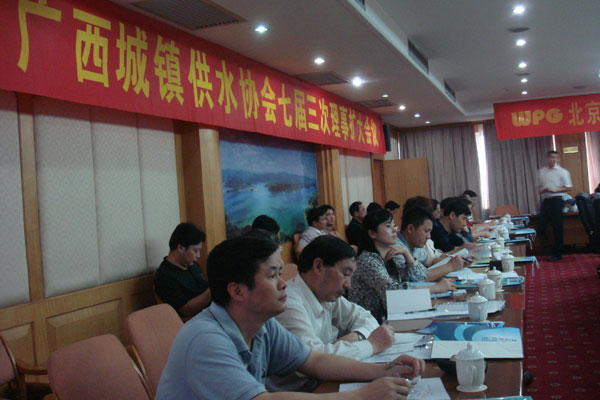 3月4日,广西城镇供水协会在百色市召开广西区城镇供水协会七届三次理事扩大会议,区内外供水行业近百家企事业单位参会,学院院长刘康怀和学院党委副书记周章明一行两人出席了此次会议。