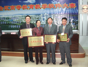 又讯,第四届广西高校多媒体教学软件中,我院最终有三件作品入闱,于12月7日在广西医科大学进行了相当激烈的演示答辩,共荣获一等奖两项、三等奖一项,同时我院也荣获优秀组织奖,在颁奖大会上教育厅领导对我院今年取得的成绩给予了相当的肯定.