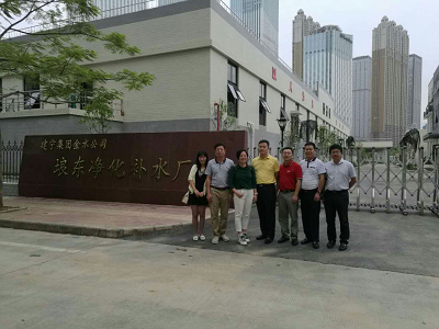 10月29日,桂林理工大学教务处处长曾鸿鹄教授、环境科学与工程学院副院长游少鸿、李艳红和给排水教研室副主任李海翔一行来到广西建宁集团金水公司琅东净化补水厂调研。广西建宁集团副总经理何刚、广西建宁集团金水公司董事长韦海涛和其他公司高管接待来访。琅东净化补水厂是南宁市第一座污水深度处理提标净化厂,毗邻主要景观生态河道竹排冲贤宾湖西北岸河道旁,占地面积约1.30公顷,处理规模为35万m3/d。该厂通过深床滤池过滤、微砂高速沉淀、紫外线消毒等技术,对琅东污水处理厂出水进行深度处理,使水质达到一级A排放标准,为南宁市主要河道之一的竹排江水系提供了洁净的景观用水,改善了竹排江水系及其下游民歌湖水体的水环境,是南宁市大力建设“中国水城”的重要工程,也是推进国家海绵城市试点建设的主要组成部分。