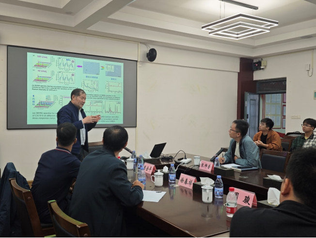 报告中,周骏教授首先深入浅出地介绍了SERS效应的基本原理和贵金属纳米结构的独特性质。随后,他详细阐述了如何利用这些特性实现生物分子的高灵敏度检测,并分享了其团队在该领域取得的最新研究成果。通过生动的案例和实验数据,周教授向师生们展示了SERS技术在疾病诊断、环境监测等方面的广阔应用前景。同时与师生们进行了积极的互动。他耐心解答了大家提出的问题,并鼓励师生们勇于探索科研未知,为推动SERS技术在生物光学检测领域的发展贡献力量。同时,他还分享了自己在科研工作中的心得和经验,为师生们提供了宝贵的建议和指导。