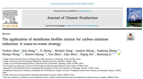 在著名学术期刊Journal of Cleaner Production上发表题为“The application of membrane biofilm reactor for carbon emission reduction: a waste-to-waste strategy”的综述论文,由我校环境科学与工程学院李海翔教授团队完成。本团队的研究重点集中在MBfR及其耦合技术在废水处理中的高效性、低碳性与可持续性。由甲烷(CH₄)和二氧化碳(CO₂)等温室气体排放造成了全球气候危机不断加剧,这迫切需要开发高效、经济和可持续的碳减排方法。利用气态底物的膜生物膜反应器(MBfRs)在废水处理中展现出多项优势,并在废气资源化利用方面具有重要潜力。