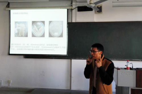12月10日,为了加强学生创新能力培养,拓宽学生的学术和工程实践视野,近日,我院环境工程教研室邀请广西师范大学的于方明教授走进课堂给环境工程“卓越工程师教育培养计划”实验班同学教授“土壤污染控制技术”。于教授毕业于中山大学,师从著名植物修复专家仇荣亮教授。于教授本次授课主要给同学介绍了耐重金属微生物的筛选、植物提取技术成本估算和小型植物修复案例分析等内容。通过本次授课,同学们对如何开展环境保护工作有了更加清晰深刻的认识,并且进一步树立了严谨的科研观念,收益良多。