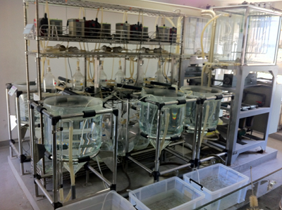 中国科学研究院污染物生态效应与环境安全研究室的张亚辉是我的指导老师,她在“生态毒理、水质基准”等研究方向有很深的造诣,独立承担及参与了多个项目,在国际一流学术期刊及会议发表论文20余篇。到达环科院的第二天我就与张老师见面探讨研修计划。张老师向我详细的介绍了实验室的情况,包括气相、液相、气质等仪器设备。实验室自制的流水式鱼类驯养室,长期驯养大型溞、小球藻、斜生栅藻、月牙藻、斑马鱼、稀有鮈鲫等水生生物。