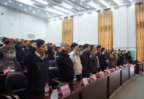接着,环境科学与工程学院院长王敦球教授郑重宣布桂林理工大学“漓江论坛”暨环境科学与工程学院第三届研究生学术年会开幕。环境科学与工程学院研究生代表欧阳欢欢同学向大家介绍了“漓江论坛”的举办背景和前期筹备情况,并为大家播放了工作人员进行漓江环保实地考察的精彩视频资料。随后,环境科学与工程学院研究生迟金磊同学带领全体与会人员宣誓:“不怕困苦,不畏艰难;关注生态,关爱漓江,身体力行、保护环境”,掷地有声的誓言,将本次开幕式推向高潮。
