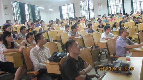报告上,王双飞教授首先向同学们介绍造纸工业的发展史,详细描述了全球纸的生产和消费情况。接着,王双飞教授对造纸工业废水(黑液、中段废水、造纸白水)的污染特征及处理新技术作了全面的讲解。结合大量图片、模型、资料等,王教授对黑液处理新技术(黑液气化法、厌氧生物处理法)、中段废水处理新技术(Fenton法)、造纸白水的处理新技术(二氧化氯纸浆漂白技术)作了详实的介绍。报告会后,师生们与王双飞教授进行了热烈的交流,大家表示从报告及交流中获益颇多。