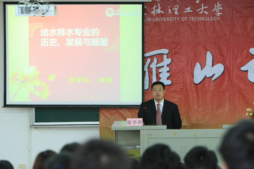 讲座中,张学洪教授首先介绍了给水排水工程专业的专业规模、招生情况和就业情况,带领同学们回顾了五十年来给水排水工程专业的发展历程;随后,他针对专业的改革,通过大量详实的数据深入分析,指出现今水工程学科倍受重视,给水排水工程专业改革也会越来越迅速和深入,专业改革也将为给水排水工程专业学生提供更为广阔的发展方向;之后,张学洪教授详细论述了给水排水工程专业的发展前景与展望。最后,他勉励大家志存高远,脚踏实地,学好专业知识,广泛了解其他相近学科,培养自己的实践能力,力争成为综合素质高、实践能力强的水工程专业人才。